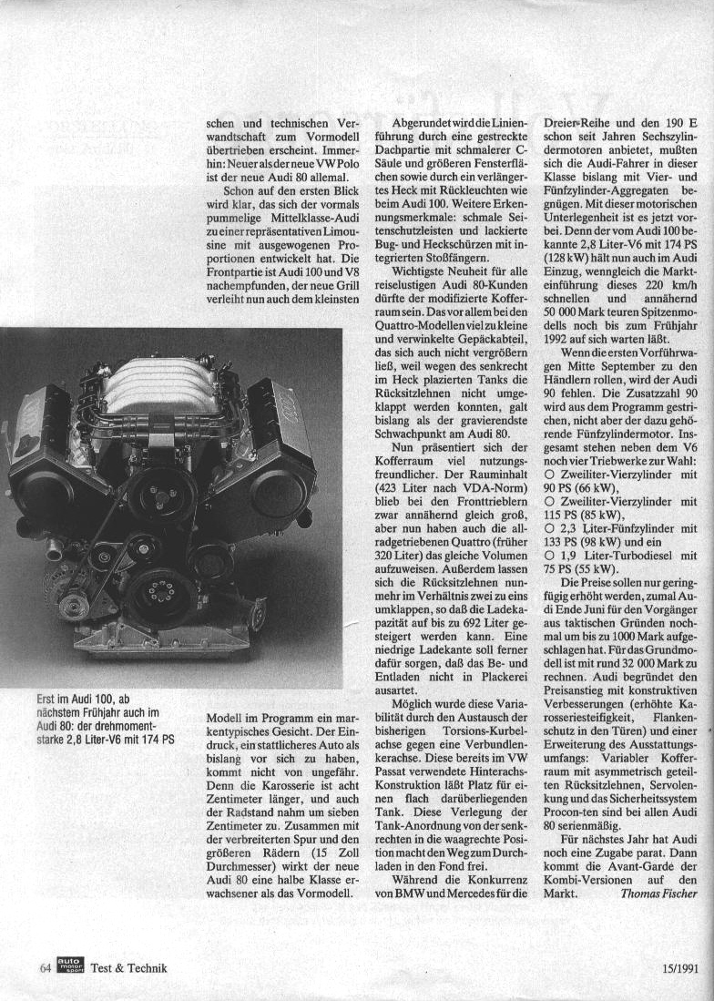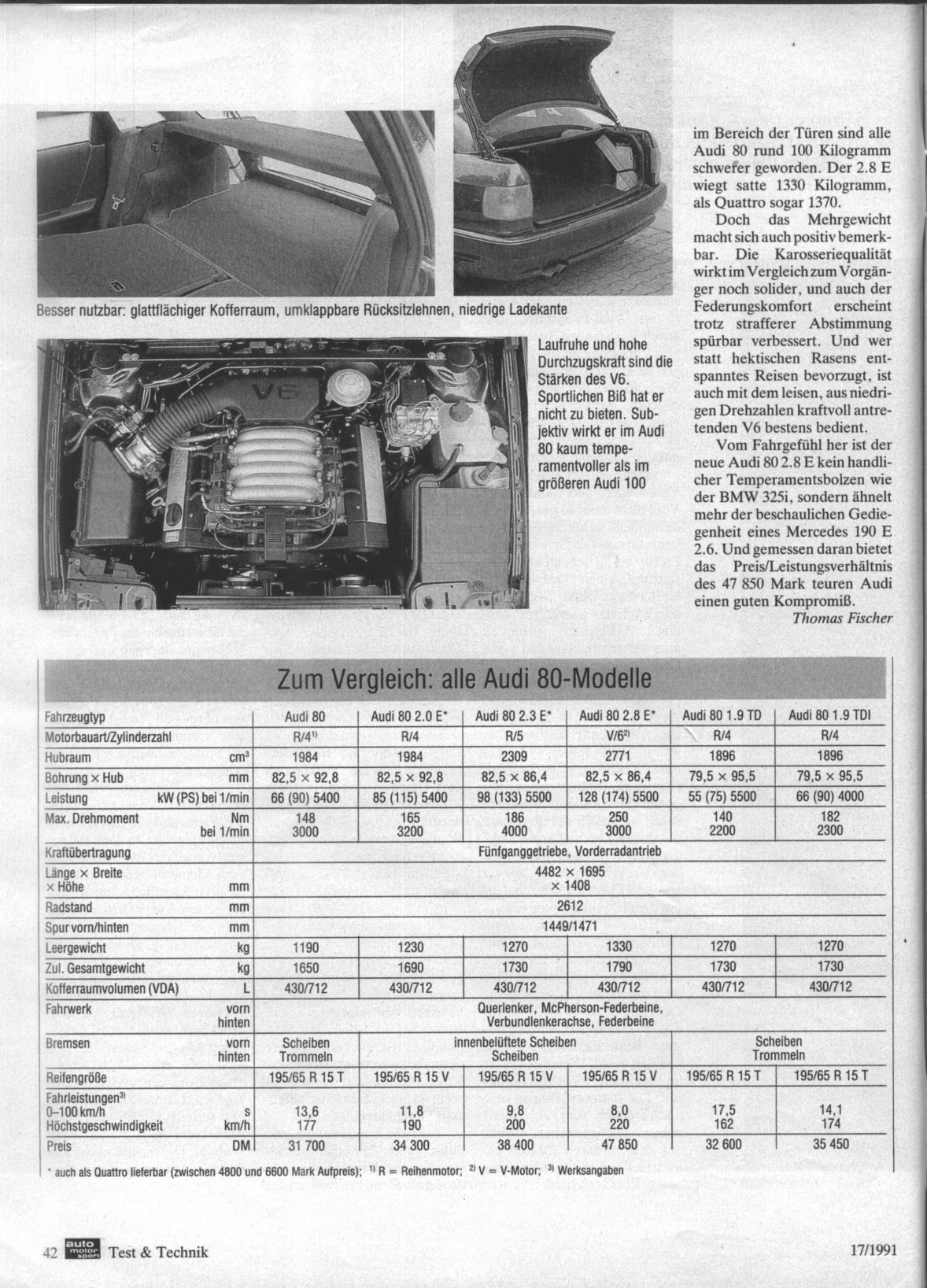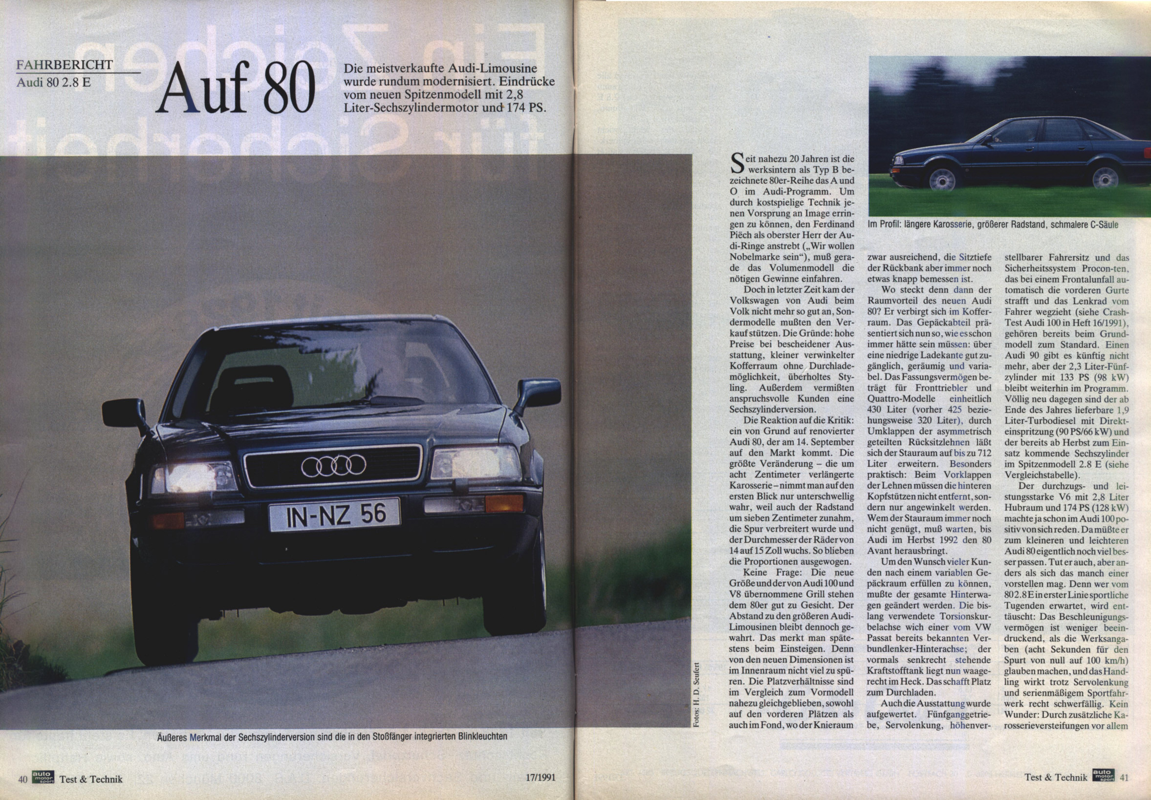 Auto Motor und Sport Ausgabe 17/1991 Fahrbericht Audi 80 2.8E