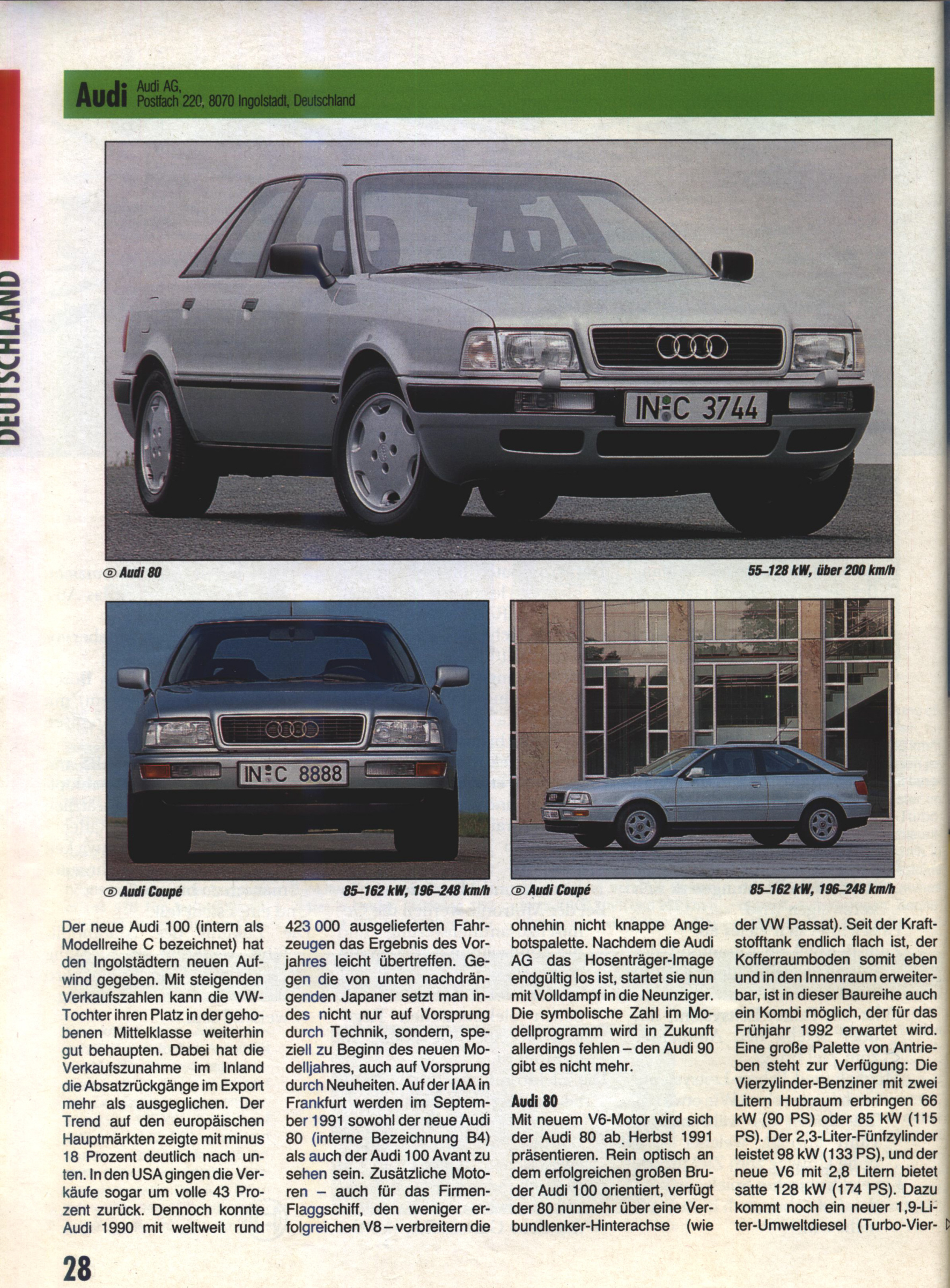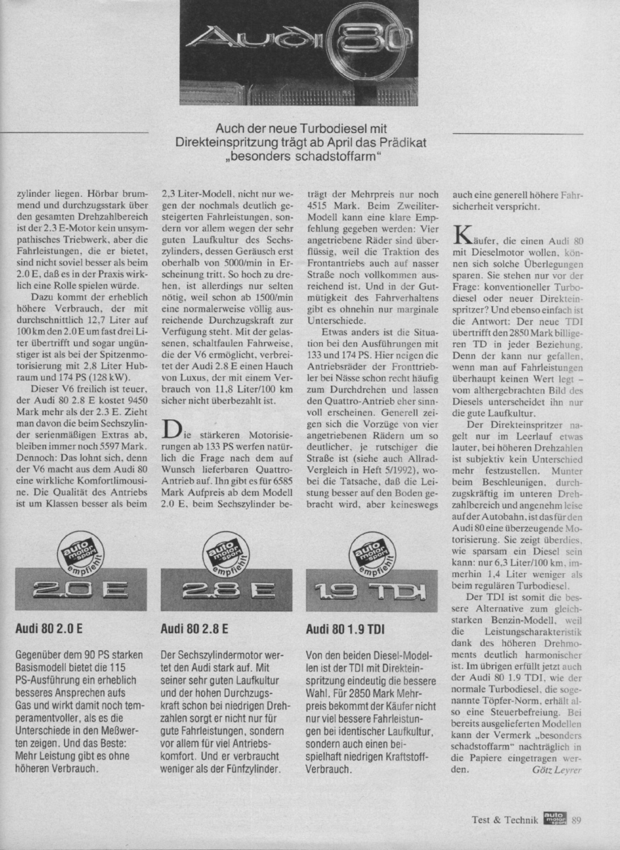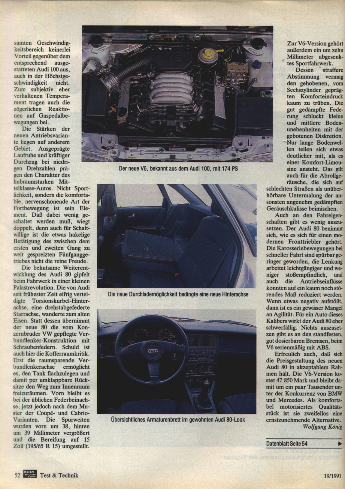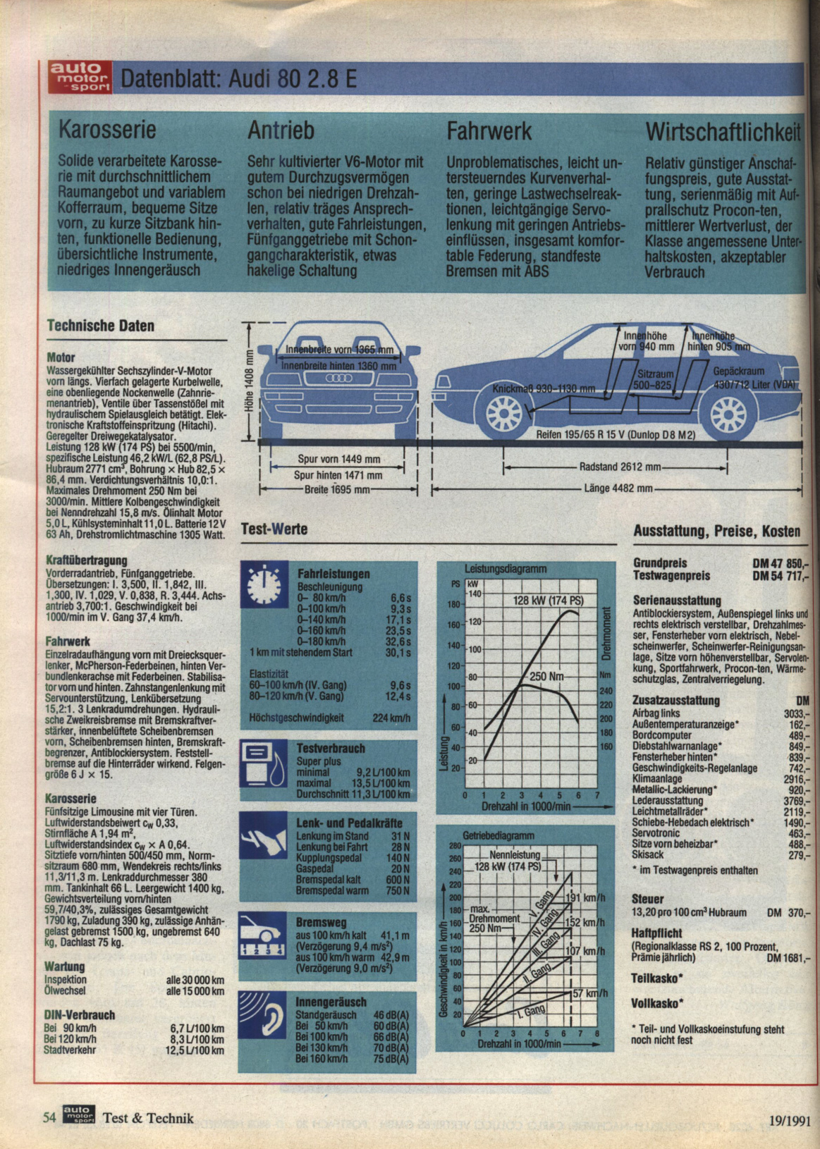 Auto Motor und Sport Ausgabe 19/1991 Test Audi 80 2.8E