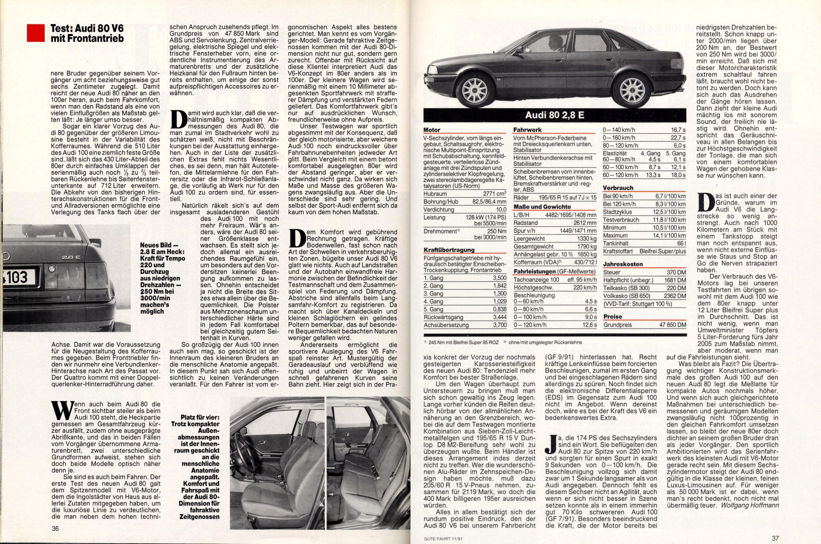 Gute Fahrt Ausgabe 11/1991 Test Audi 80 2.8E