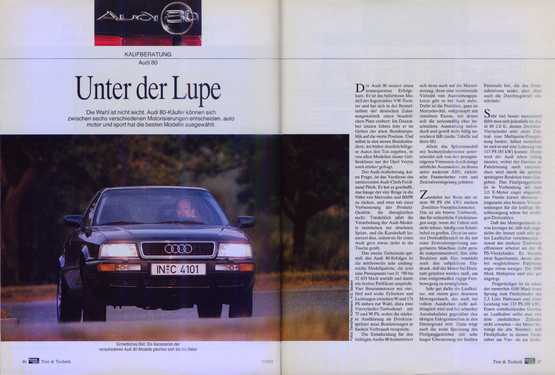 Auto Motor und Sport Ausgabe 07/1992 Kaufberatung Audi 80